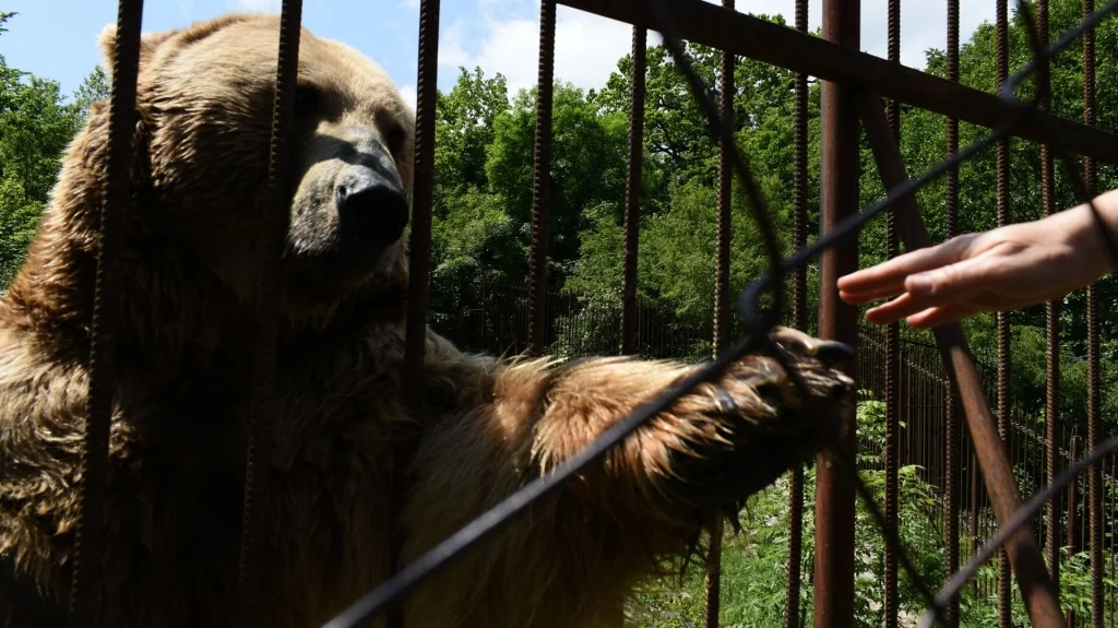 Постоим на мостике прямо над бурлящей рекой, пройдем по ущелью, увидим небольшой зоопарк. Поздороваемся с медведями, Тимошей, который нам "постесняется" и потанцует с Машей, покормим их сосисками.