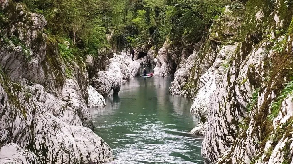 Красивое ущелье, первозданная природа, самшитовый лес, живописный речной бассейн, висячий мост, Ивановский водопад и огромные тектонические разломы.